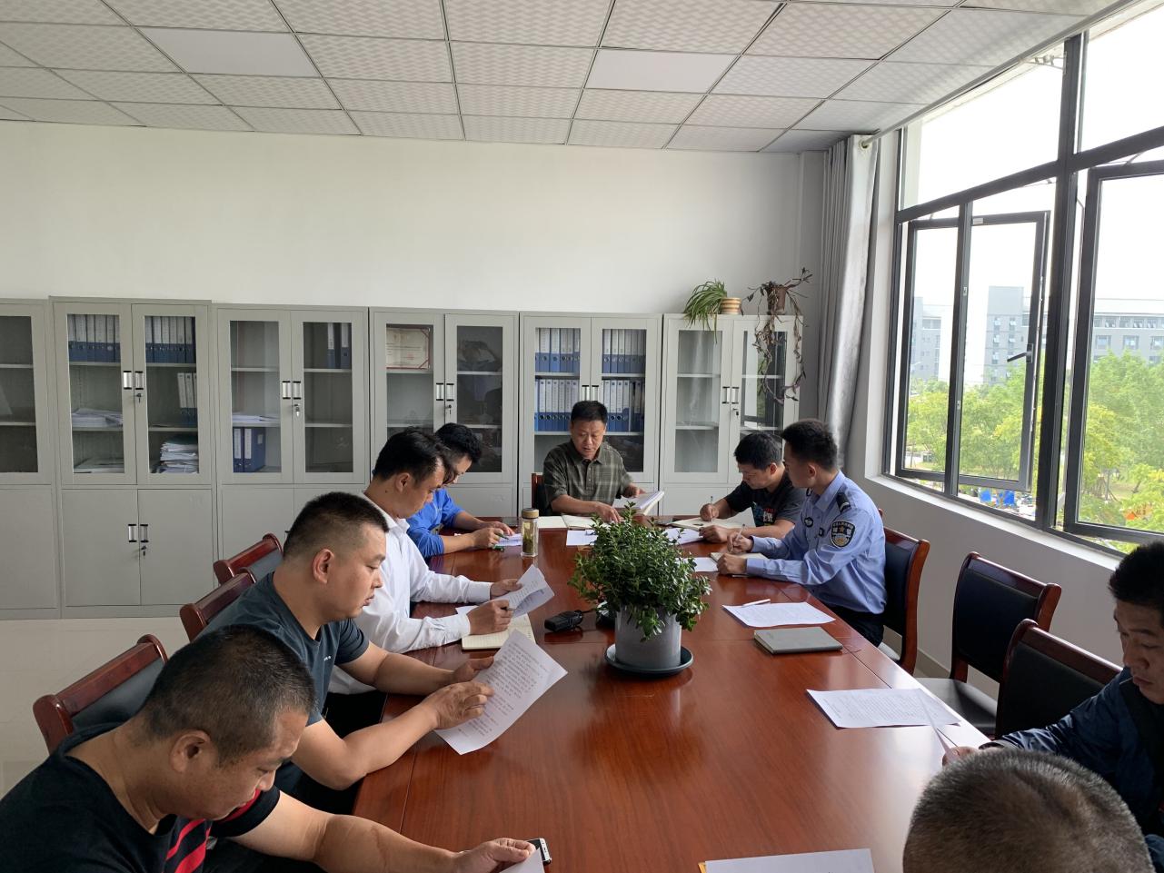 2020年9月29日,滁州城市职业学院保卫科在警务站三楼会议室召开工作例会,会议由保卫科科长蒋峰主持,保卫科全体成员、警务站驻站人员及物业代表参加会议。