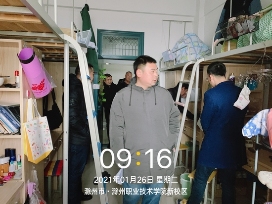 为切实做好2020年春节寒假期间的安全工作,进一步推进平安校园的建设,根据《滁州城市职业学院安全专项整治三年行动实施方案》文件精神和学院工作安排,2021年1月26日,学院安全工作领导小组办公室组织保卫科、学生处、总务处、实验实训中心等职能处室有关人员及各系学管秘书、物业人员,重点对学生宿舍、食堂、实验实训中心前期检查中发现的隐患整改落实情况进行了复查。