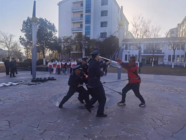 为确保活动顺利开展,学校保卫处在演练前做出精密部署,明确演练流程及工作人员职责,确保应急处置演练达到预期效果。在演练现场,民警就不同群体如何应对突发事件进行了详细讲解,并结合盾牌、钢叉、警棍等防暴器材正确使用方法、动作要领进行现场教学指导。在随后开展的模拟不同场景攻防演练中,及时指出演练过程中存在的问题,进一步明确在危机处置时各自的分工和职责。