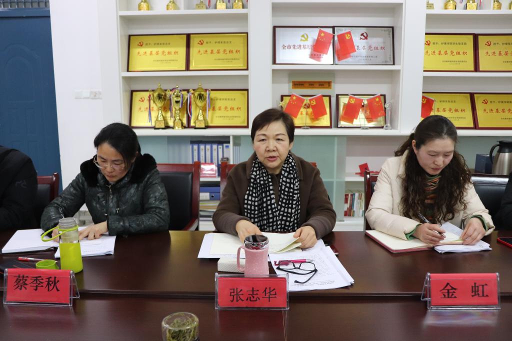 齐心协力谋发展,凝心聚力促和谐。2月10号下午,护理学院在B3-106召开全体教职工大会,校党委书记张志华,护理学院党总支书记蔡季秋,护理学院院长金虹及全体教师参加会议,会议由蔡季秋主持。