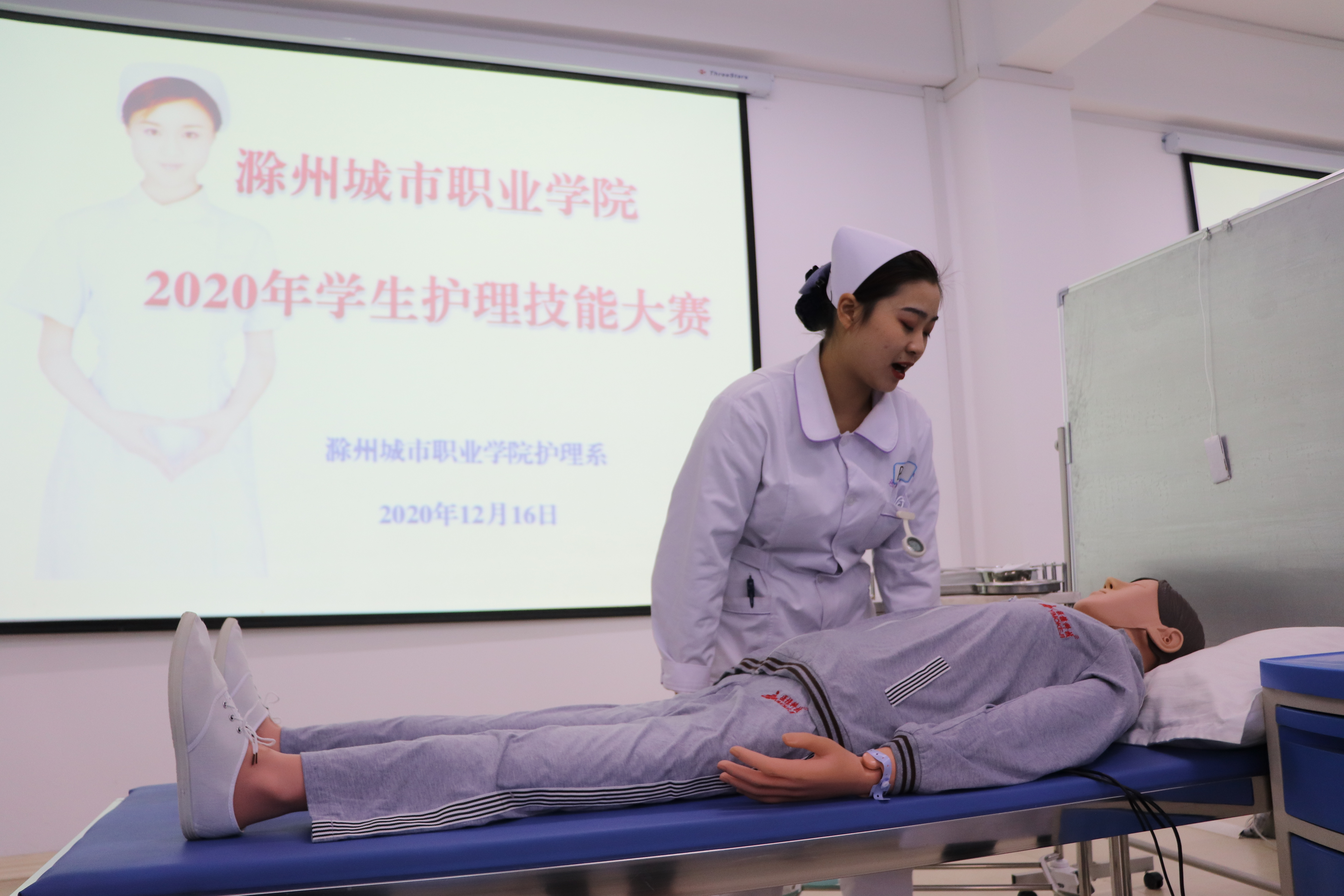 技能成就梦想,大赛点亮人生。12月16日,学院2020年护理、助产技能大赛在护理系现代护理实验实训中心举行。党委委员、副院长曹士东,党委委员、教务处处长王树青莅临指导大赛。经过初赛复赛层层筛选,护理专业30名学生、助产专业21名学生参加大赛。