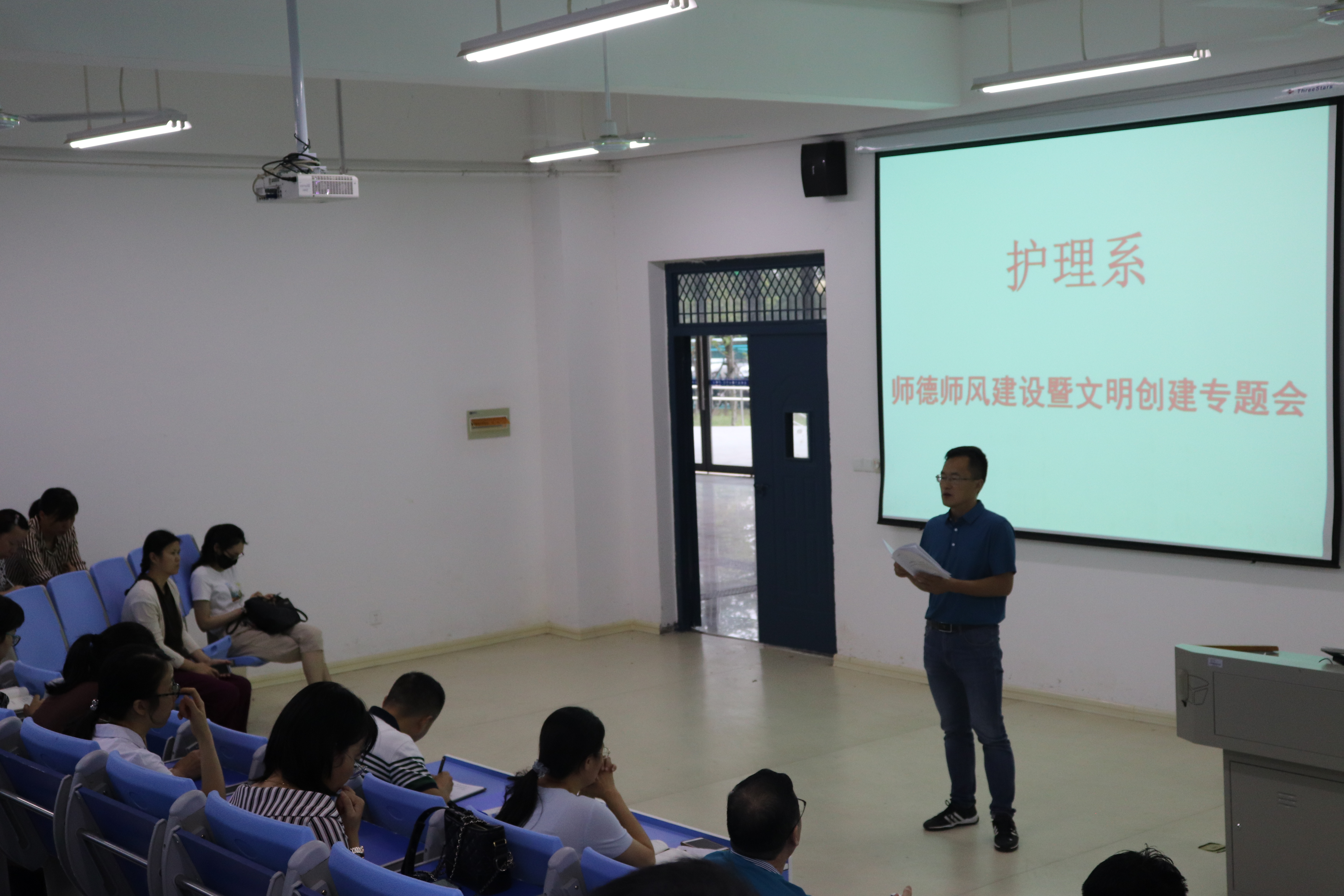 为加强师德师风建设,切实做好滁州文明创建迎检工作,9月16日下午,护理系在B3-110召开全体教职工师德师风建设暨文明创建专题会议。系主任章正福主持会议。