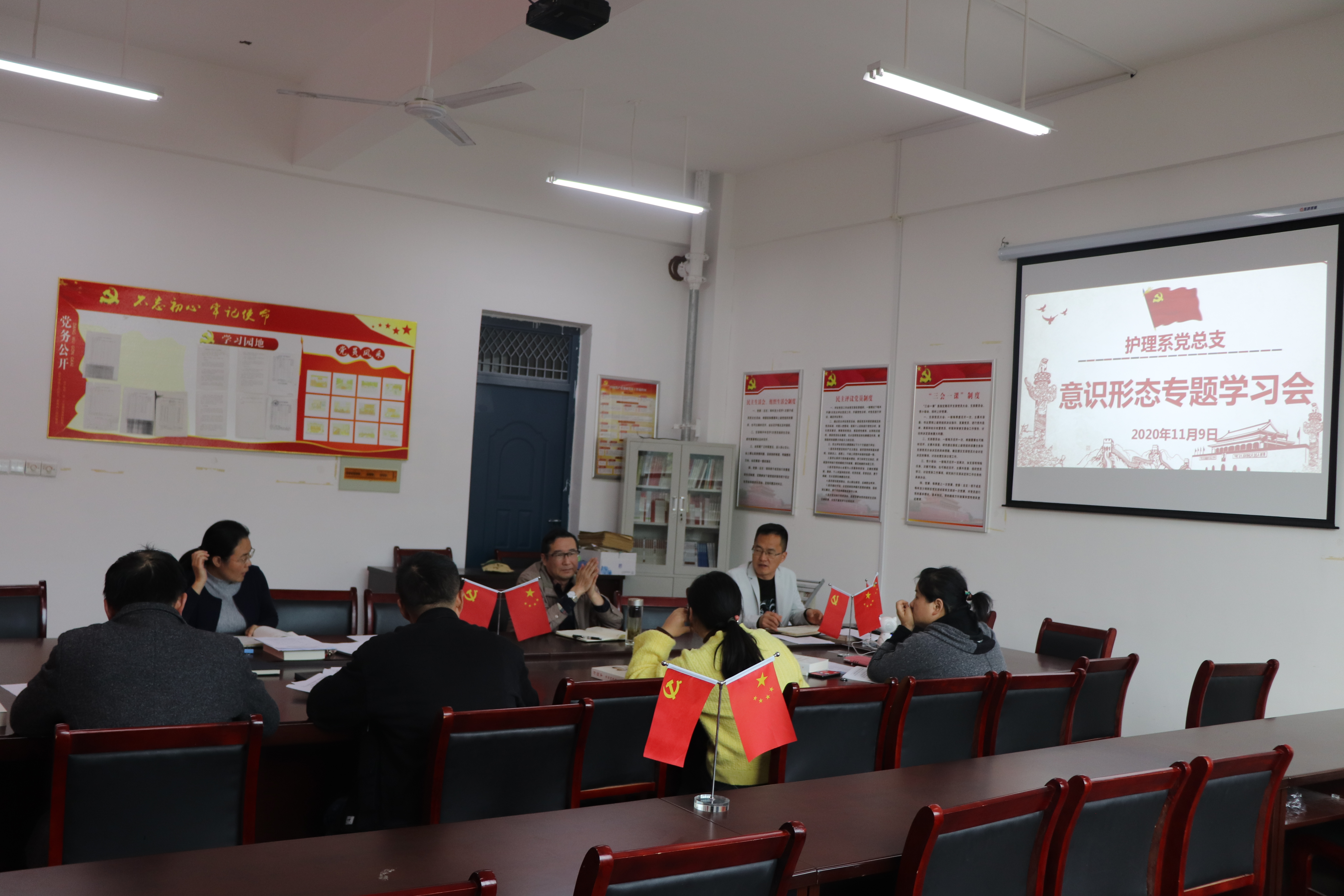 11月9日下午,护理系党总支在党员活动室召开意识形态工作专题学习会,传达学院意识形态工作领导小组暨第四季度意识形态工作研判会议精神。系党总支全体支委参加会议。系党总支书记蔡季秋主持会议。