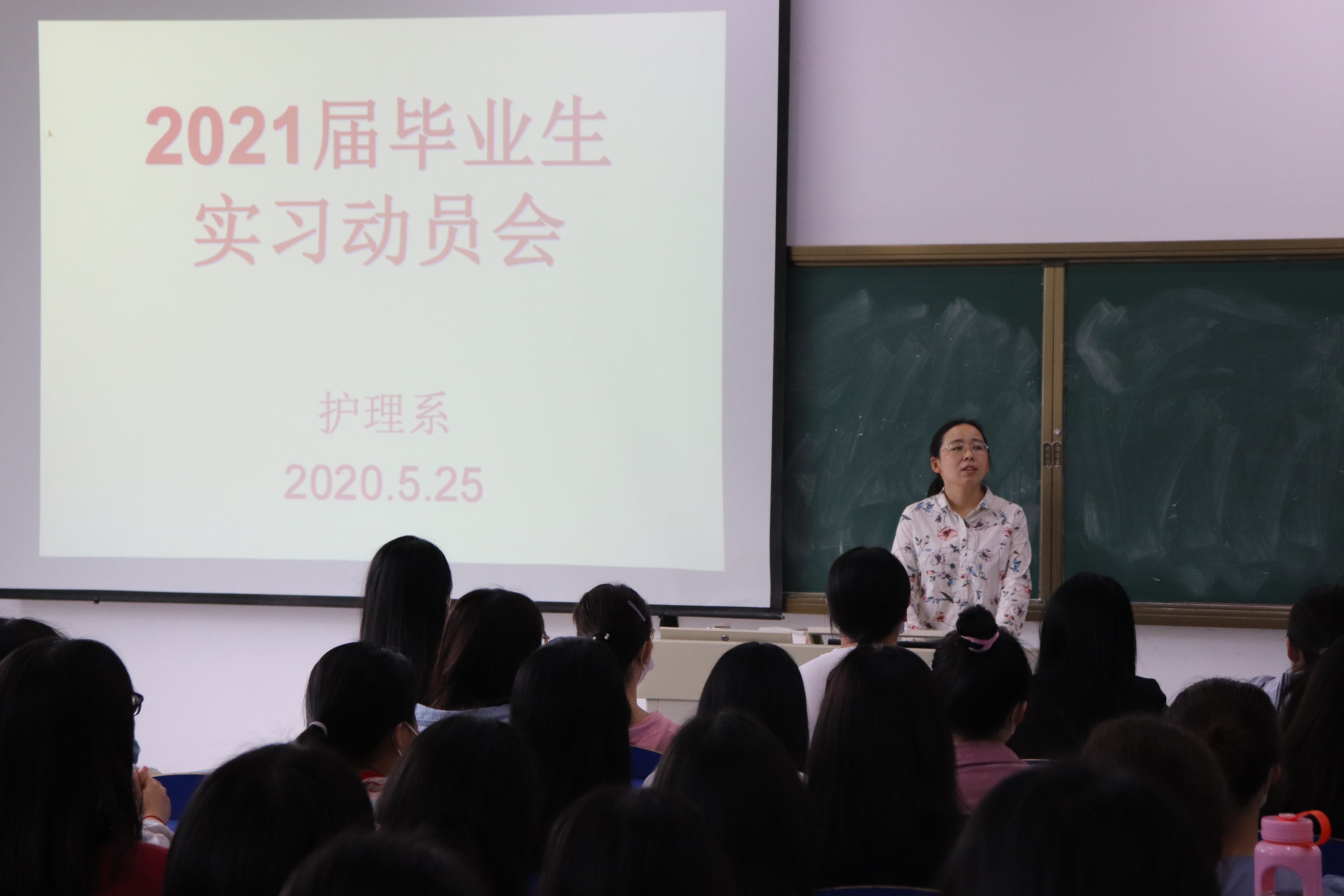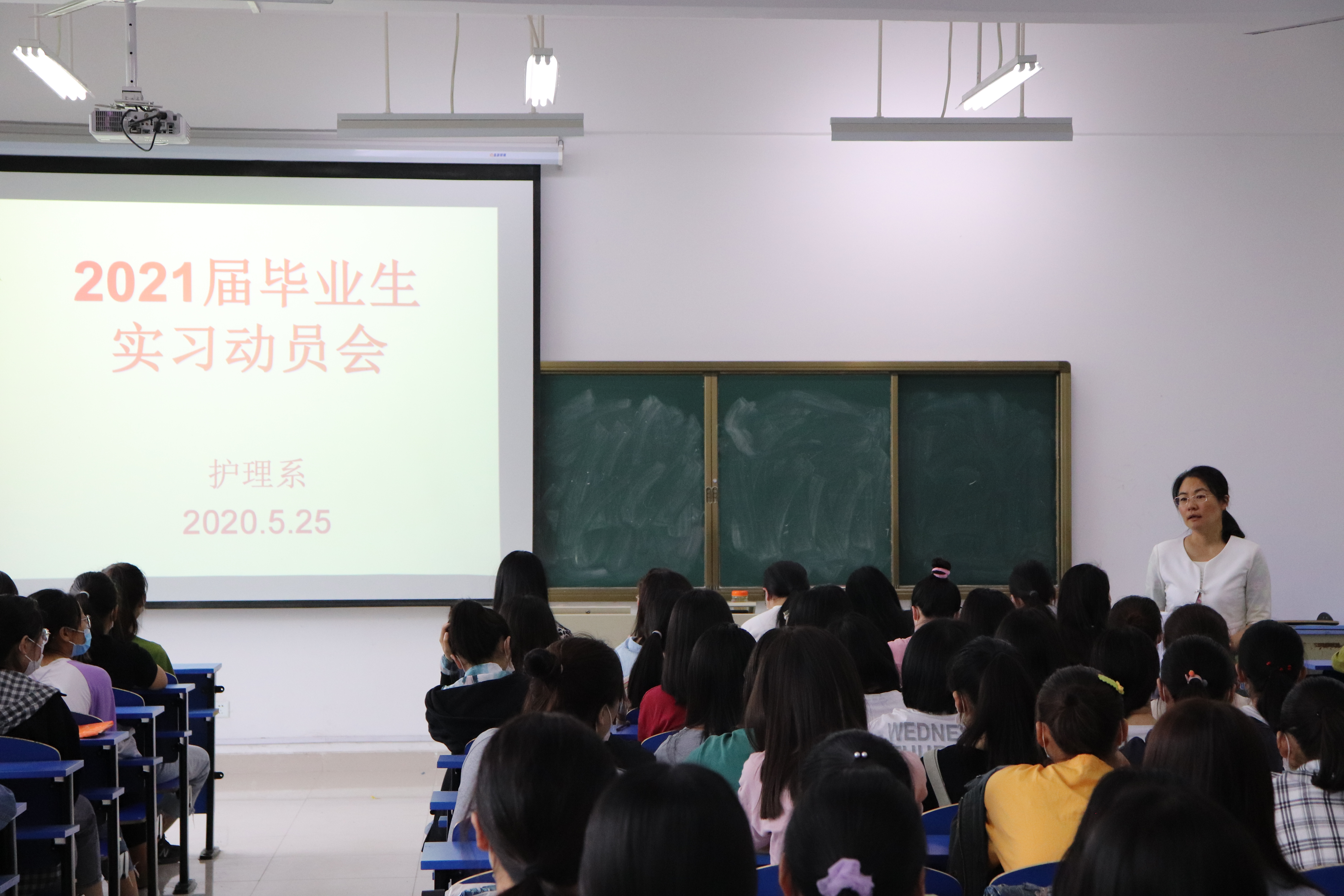 2020年5月25日上午,护理系在B1教学楼举行了实习动员大会。系主任章正福、系党总支书记蔡季秋出席会议并讲话,护理系2021届毕业班级全体同学、系部学管老师及辅导员参加了动员大会。