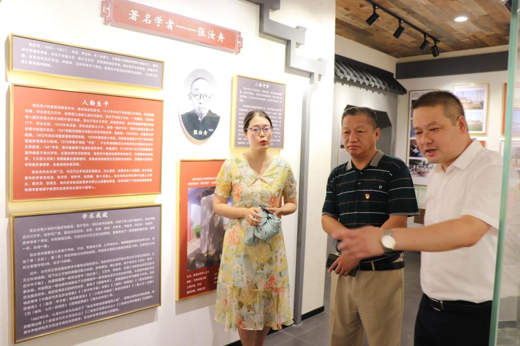 在讲解员的引导下,施向阳一行参观了大墅镇乡村振兴馆。展馆内大量的历史图片述说着全椒县多年的艰苦卓绝、气壮山河的英勇斗争,向我们展示着大墅的革命记忆。从红色摇篮,到点燃烽火,再到胜利曙光,再现了英勇的党员同志们在全椒波澜壮阔的历史革命斗争史。了解了当地一代代优秀的中国共产党人坚守在工作一线,感受着他们的平凡而伟大。以幸存的“八百壮士”之一的陈德松、全椒最早的共产党员时生、人民军队中的模范工作者许效民等为代表的中国共产党人,百折不挠,以大无畏的革命气概、顽强战斗的姿态,为国家做出贡献。通过本次活动,大家深刻感受到中国革命的胜利来之不易,再次升华了对党史的认识,更加坚定以党史学习教育为重点的“四史”教育学习,不断增强“四个意识”、坚定“四个自信”、做到“两个维护”,切实做到为党分忧、为国尽责、为民奉献。