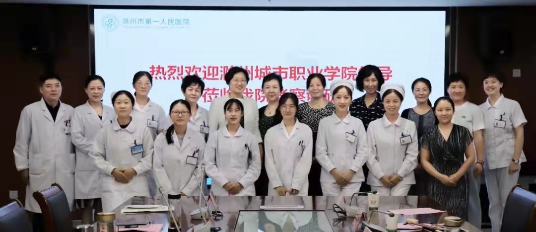 滁州市第一人民医院参加此次会议的有院党委书记、院长刘家珍,党委委员、护理部主任辛玲,科教科、检验科等相关科室负责人,部分优秀带教老师及我院优秀毕业生、正在实习的部分学生代表等参加了调研。会议由辛玲主持。