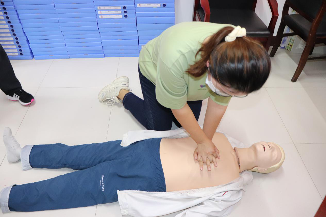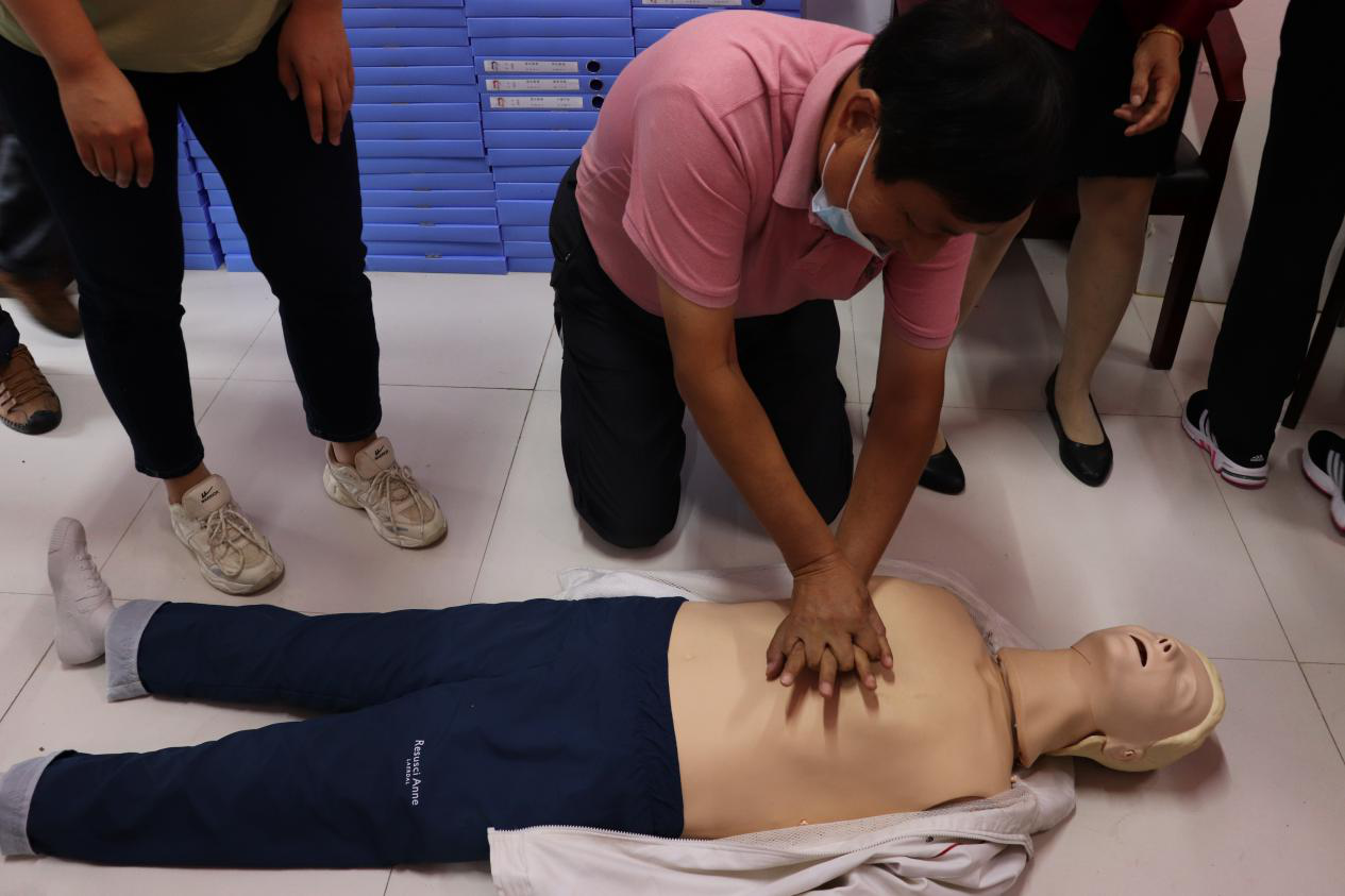 本次培训的内容主要包括心肺复苏和海姆立克急救法。培训老师李勋华先是深入浅出地讲解心肺复苏法的操作要领,以及气道异物梗阻对于成人、儿童以及婴儿应采取的急救方法,并利用模型为大家进行示范和教学,使大家能够直观的了解和掌握心肺复苏、气道异物梗阻的基本急救方法。