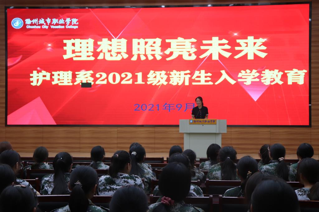 为深入学习习近平总书记“七一”重要讲话精神,落实立德树人根本任务,培养学生爱党爱国爱岗情怀,使2021级新同学更加充分了解学院和护理系,熟知护理、助产、老年保健与管理专业的情况以及系部学生管理制度和团学工作,加深学生的专业认同感,护理系于9月14日晚,在第二学术报告厅及各分会场为2021级新生召开了主题为“理想照亮未来”的入学教育,会议由护理系党总支副书记朱启来主持,护理系党总支书记蔡季秋,系副主任左晶晶,学管秘书卢齐伟、李勋华,团总支书记王艳,新生班级辅导员(班主任)以及护理系2021级全体新生参加会议。