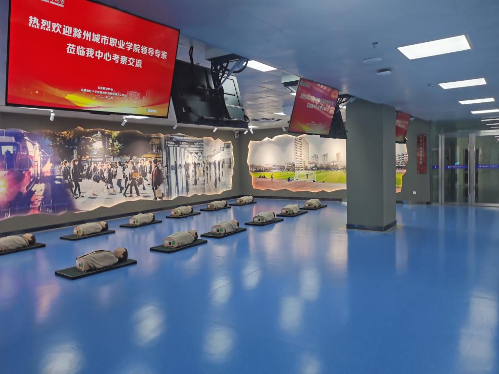 座谈会后,一行人实地走访查看了急救与灾难现场救护培训中心,走访过程中双方就场地建设、师资构成、日常维护等细节进行了深入交流。