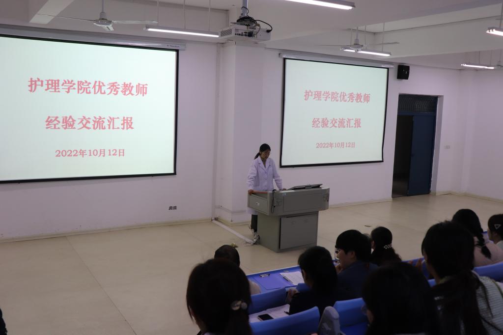 10月12日,在护理学院B3-110,护理学院举办了优秀教师事迹报告会。来自基护教研室的周霞和薛梅老师分享了各自的教育先进事迹和经验,她们以“捧着一颗心来,不带半根草去”的精神,发挥了榜样的作用,也以“赤诚之心、奉献之心”打动了在座的所有老师。