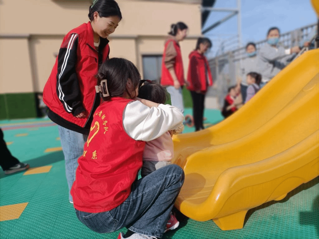 观摩学习期间,安排每位学生托育园小朋友们按照“一托一”模式形成结对。托育园当日下午课程主要为感统训练通过趣味吹纸条”,培养幼儿的专注力和控制力,并可增强幼儿的肺活量。