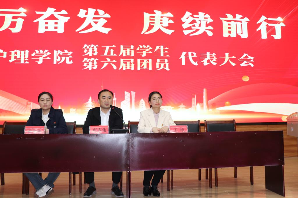 踔厉奋发,赓续前行。4月26日,护理学院在校第二报告厅召开第五届学生代表大会暨第六届团员代表大会,大会的主要任务是听取和审议第四届学生会、第五届团总支的工作报告,选举产生新一届学生会委员会和团总支委员会。党总支副书记卢齐伟、团总支书记王艳、学管老师张莹莹、辅导员代表及来自全院37个班级的80名正式代表参加大会。会议由团总支书记王艳主持。