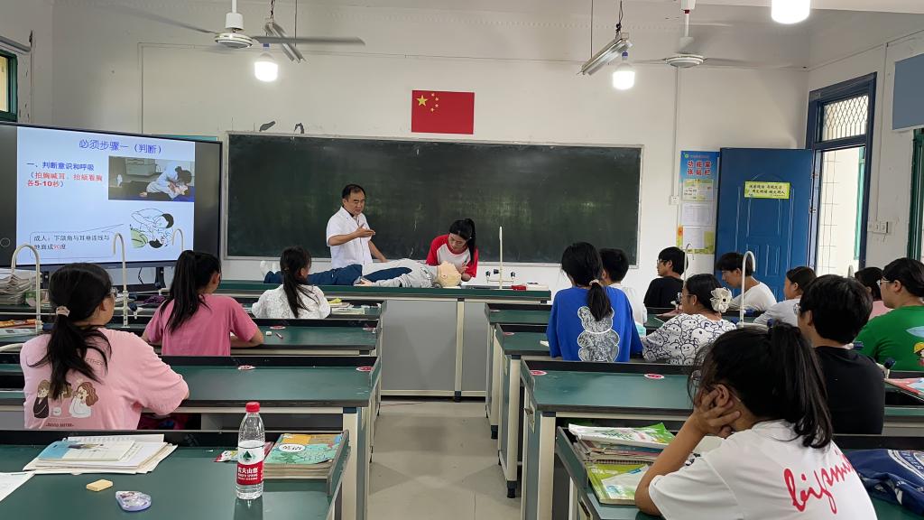 为深入学习宣传贯彻习近平新时代中国特色社会主义思想,全面贯彻落实党的二十大精神,进一步普及应急救护知识,提高师生应对突发事件及意外伤害的应急救护和自救互救的能力,8月7日,滁州城市职业学院护理学院党总支书记蔡季秋带领“南丁格尔”志愿者们来到全椒县武岗学校,开展“敬佑生命,呵护健康”急救知识及技能系列健康宣传教育活动。