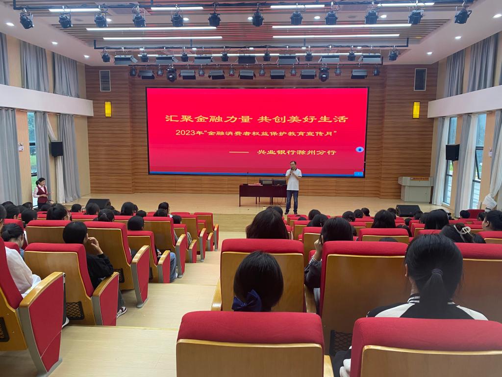 本次活动以授课的形式开展,兴业银行滁州分行零售金融部总经理为同学们普及了金融知识宣教。随后,兴业银行滁州分行营业部李卓副行长担任宣讲老师,通过PPT展示,为同学们讲解校园贷的危害、通过典型案例分析新型网络电信诈骗的新手段,普及反诈知识,提醒广大师生保护好银行卡和个人信息,了解掌握安全支付知识,引导同学们养成良好的消费习惯,增强自我保护意识,远离不良贷款。活动最后,设置了有奖问答互动,同学们纷纷踊跃抢答、积极互动,进一步增强了同学们对金融知识的学习兴趣。