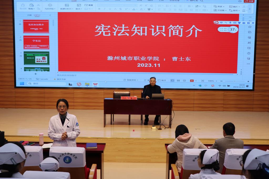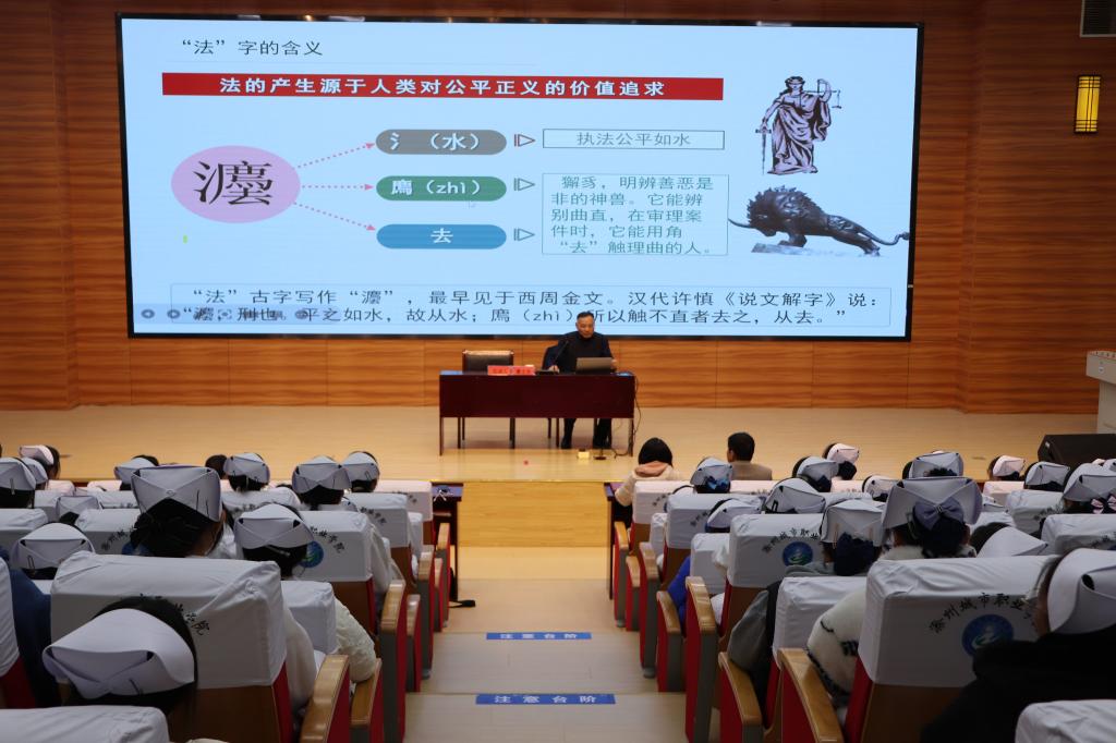 讲座中,曹校长从宪法知识简介入手,通过历届国家“宪法日”主题,让同学们了解《宪法》,通过对各种法律条文的解读帮助广大师生更全面地了解法律常识、树立法制观念,引导广大师生运用法律思维处理问题,使广大师生受益匪浅。接着结合《护士条例》和护士资格证考试的真题,为同学们解释了相关条例的运用,生动形象地向同学们普及了相关条例知识。最后从深刻认识习近平法治思想的重大意义、准确把握习近平法治思想的核心要义和全面掌握习近平法治思想的科学方法三个角度入手,帮助师生学习贯彻习近平法治思想。