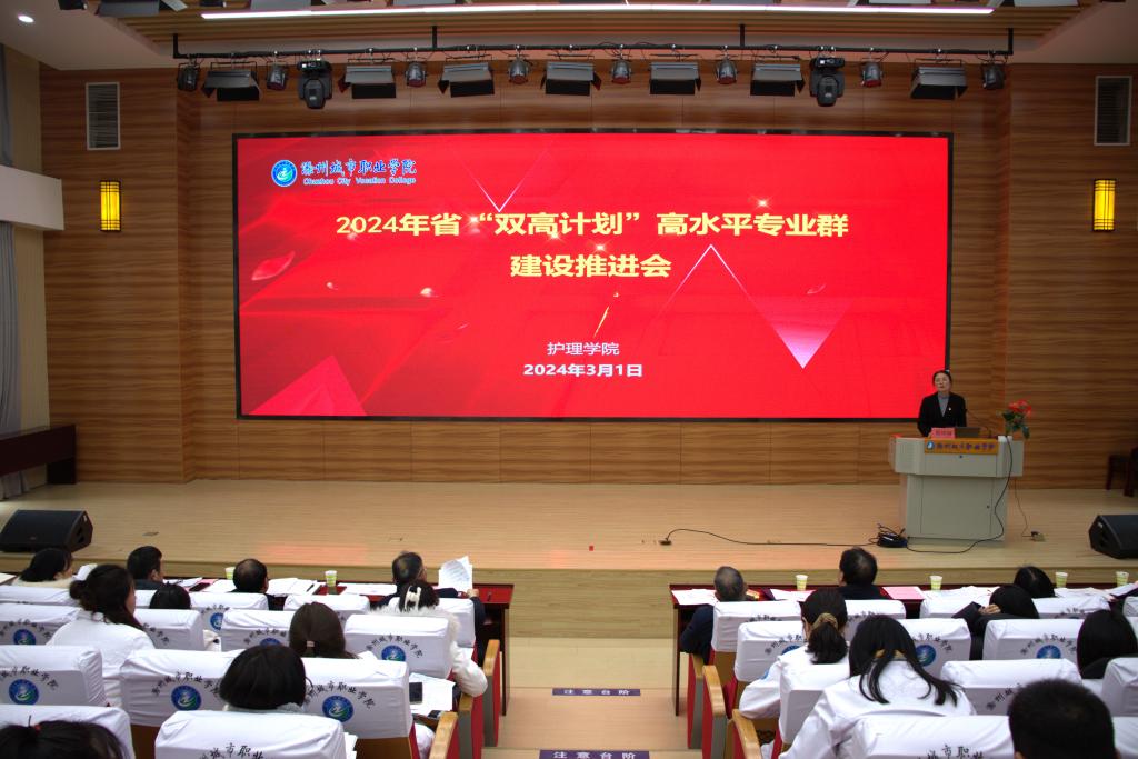 为有序推进省级“双高计划”项目建设,确保学校护理高水平专业群工作高质量开展,3月1日下午,在学校第二报告厅召开了2024年省“双高计划”高水平专业群建设推进会。党委委员、副校长曹士东,教务处、组织人事处、学生处、财务处、科研处、实验实训中心、网络信息中心、继续教育学院、医学院等相关处室院部负责人和护理学院全体教职工参加了会议。会议由护理学院党总支书记蔡季秋主持。