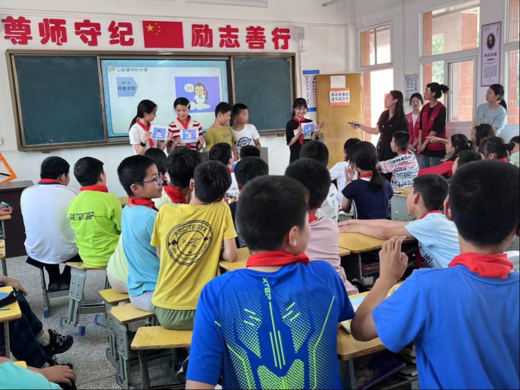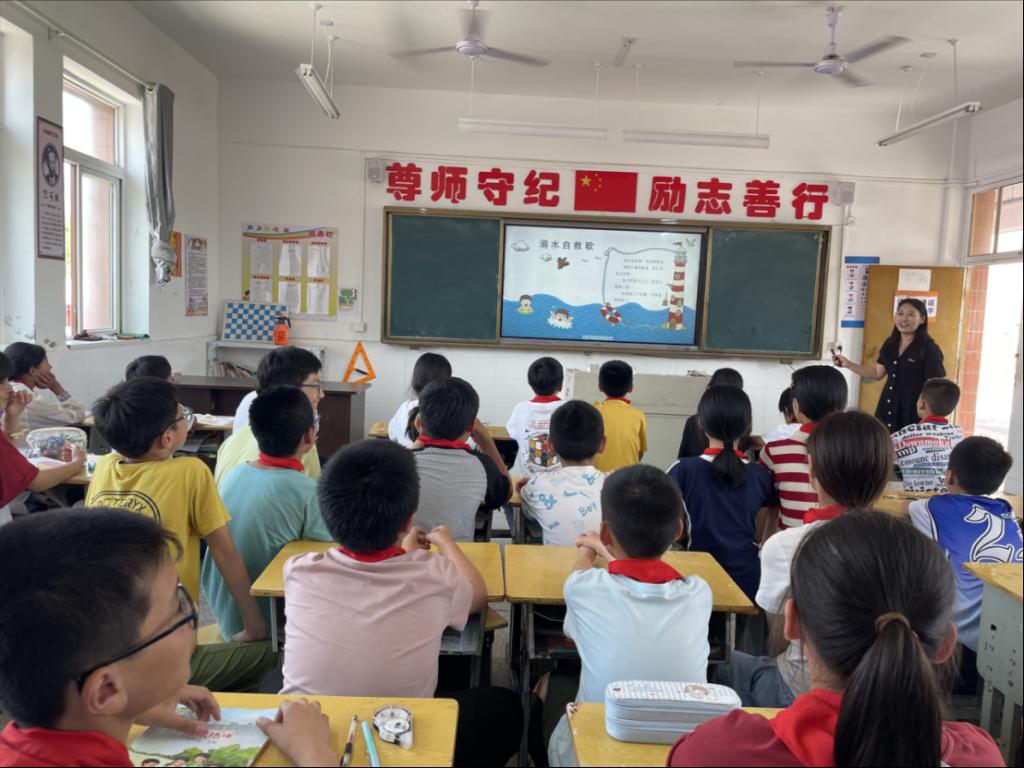 随后,师生们还向学生们讲解了如何正确判断危险水域、如何在遇到危险时自救等实用知识。为了让学生们更好地掌握这些知识,她还邀请了学生们上台参与模拟演练,通过亲身实践加深理解,在轻松愉快的氛围中学习防溺水知识,提高了学生们的学习兴趣和参与度。