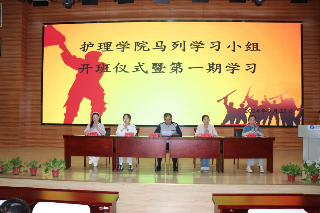 为进一步加强对青年学生的思想政治引领,坚定学生的理想信念,2024年9月25日,护理学院马列学习小组开班仪式在护理学院报告厅举行。学院党总支副书记卢齐伟、团总支书记王艳、学生党支部副书记王辛怡、组织委员申雅婷、宣传委员周家静出席大会,全体23级思政委员、各班团干参加会议。在全体参会人员奏唱国歌的庄严氛围下,本次开班仪式正式开始。