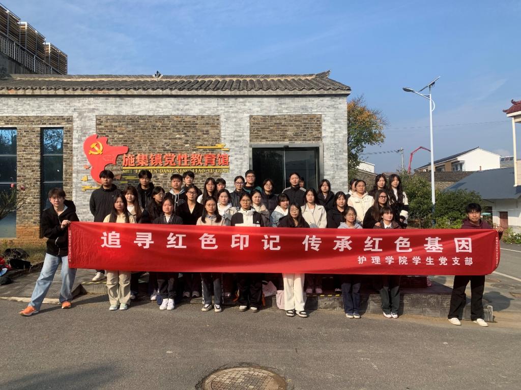 习近平总书记强调:“用好红色资源,传承好红色基因,把红色江山世世代代传下去。”为正确引导处于“拔节孕穗期”的入党积极分子增强对红色文化的认知和认可,使红色文化入脑入心,坚定立场,提高政治素质。11月21日,护理学院学生党支部组织40余名入党积极分子奔赴施集镇党性教育馆、藕塘烈士陵园开展红色教育。