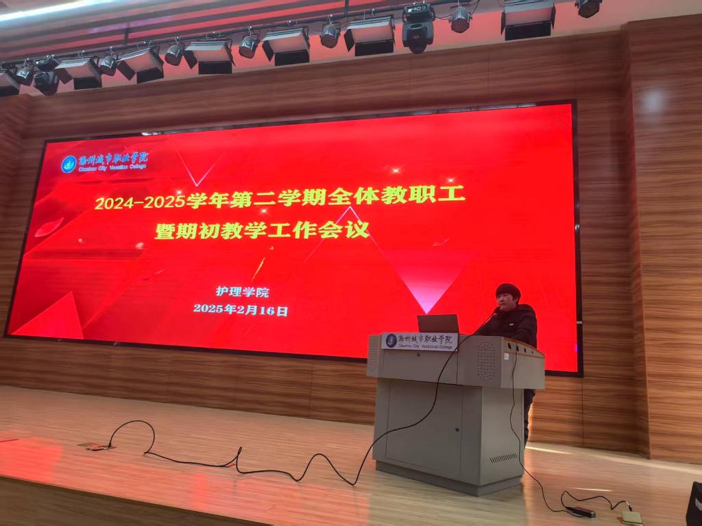 2月16日上午,护理学院在第二报告厅召开新学期教学工作大会,全体教职工参加会议,会议由副院长李勋华主持。