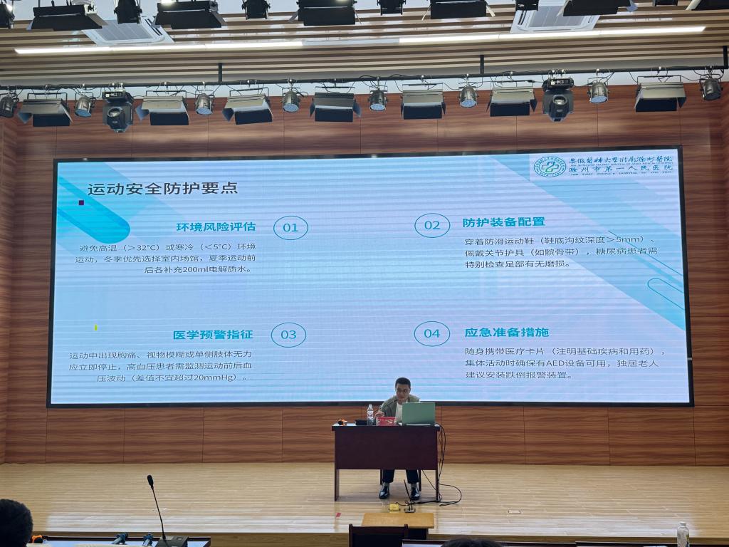 讲座中,王三刚主任以“老年人生理机能变化”为切入点,结合临床案例系统阐释老年保健体系。他指出,老年人的健康管理需兼顾生理、心理与社会适应能力:“饮食上要注重营养均衡,通过少食多餐、细软易消化食物保障吸收;运动方面,建议选择如健步走、瑜伽等低冲击运动,既能增强肌力又能预防跌倒。”此外,王主任指出:现代老年健康管理需突破传统医疗边界,融入社区支持、居家护理及智慧健康技术,引导学生思考如何在未来工作中推动“医养结合”落地。