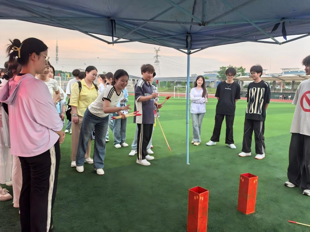 步入活动现场,丰富多彩的趣味项目琳琅满目。投壶这一传统游戏区域人气爆棚,同学们纷纷摩拳擦掌。在活动过程中,大家屏气凝神,手持箭矢,专注地瞄准前方的壶,一次次尝试将箭矢投入壶中。石膏娃娃涂鸦区域同样热闹非凡,同学们围坐在一起,面前摆放着形态各异的白色石膏娃娃和五颜六色的颜料。大家充分发挥自己的奇思妙想,有的精心调配色彩,有的认真勾勒线条,将原本单调的石膏娃娃赋予了独特色彩与个性。在此过程中,同学们沉浸其中,忘却了平日的学习压力,尽情享受艺术创作带来的乐趣,在色彩的世界里释放心灵、愉悦身心。