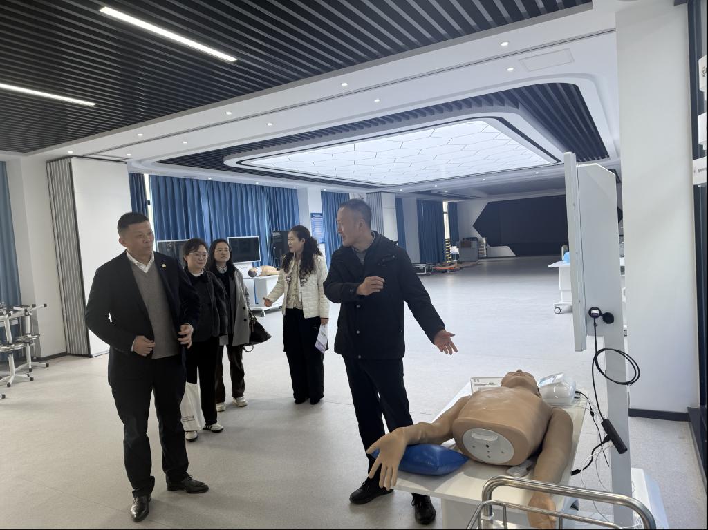 宣讲结束后,在护理学院健康管理系负责人的陪同下,鲍总一行前往我校实训中心参观考察。参观过程中,李勋华详细介绍了实训中心的建设理念、功能布局、设备配置及实训教学开展情况,重点展示了与现代家政服务、老年保健相关的实训区域与实操设备,体现了我校以实践能力培养为核心的人才培养模式。鲍总对我校实训中心的标准化建设、实训教学的专业性给予高度评价,认为实训设施贴合行业实际需求,能够有效提升学生的实操技能,为学生顺利进入企业实习、快速适应岗位奠定了坚实基础,同时也表达了与我校深化实训合作、共建育人平台的意愿。