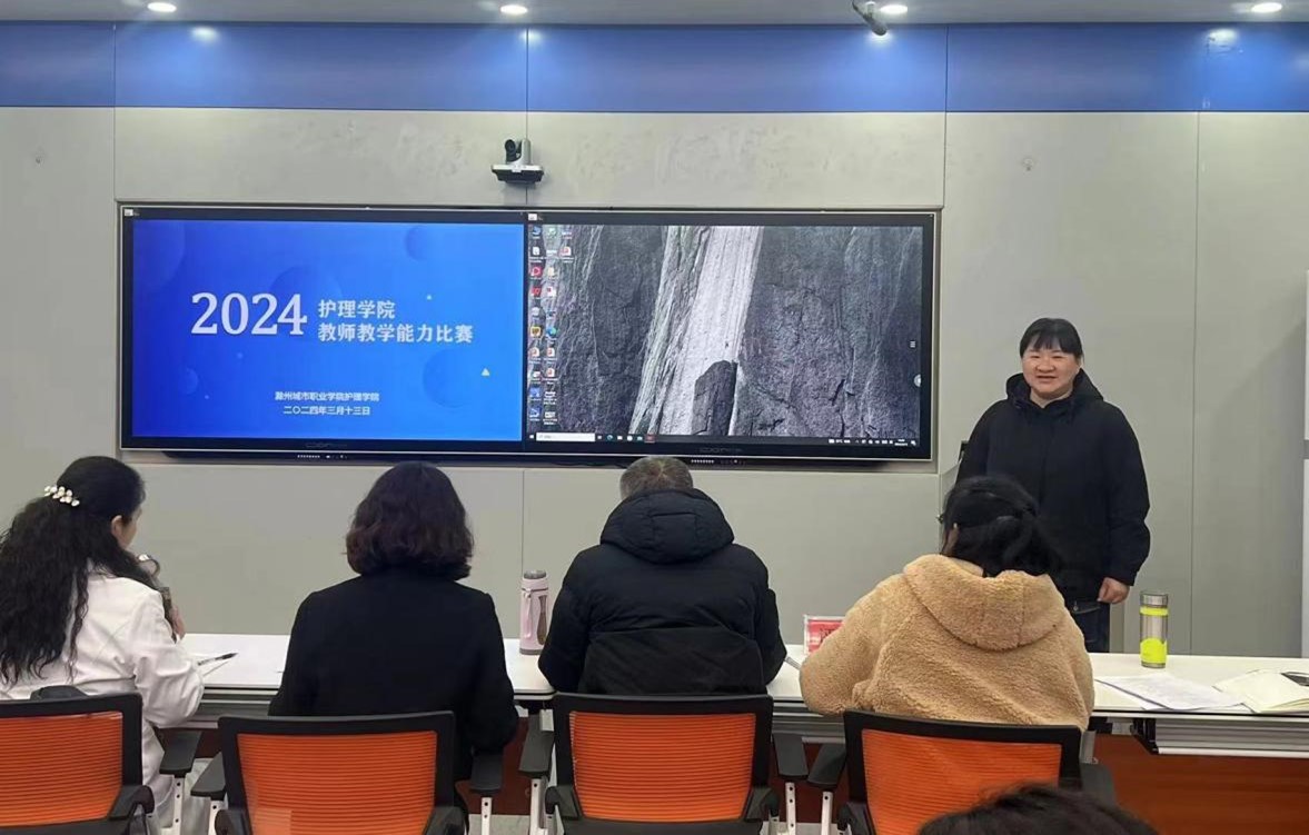 为进一步提升教师的教育教学能力,选拔优秀教学团队,3月13日下午,护理学院在B1-506智慧教室举行2024年教师教学能力比赛。为让参赛团队尽快熟悉校、省赛流程,早日进入比赛状态,本次比赛严格按照2023年校赛及省赛文件要求组织。护理学院副高及以上职称教师及2023安徽省教学能力比赛获奖团队担任大赛评委,全体无课专兼职教师到场观摩。