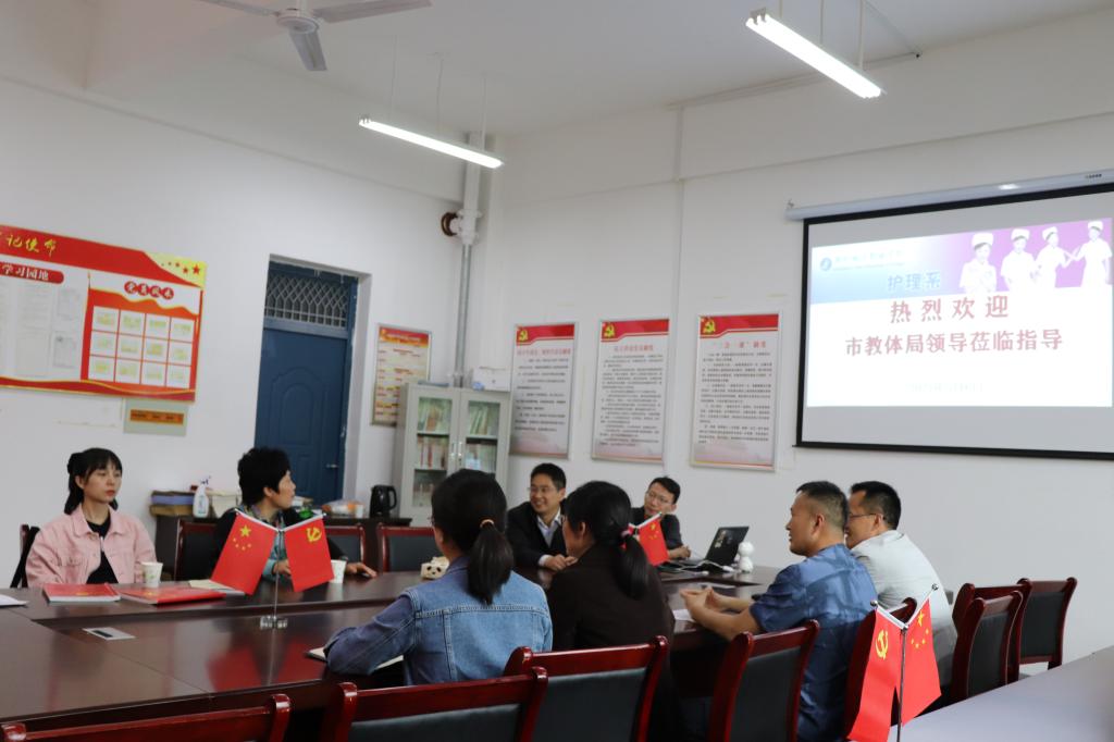5月6日下午,滁州市教体局机关党委专职副书记王兴娥一行三人莅临我系检查指导支部党建工作。学院组织人事处处长徐云川、护理系党总支书记蔡季秋等陪同检查指导。