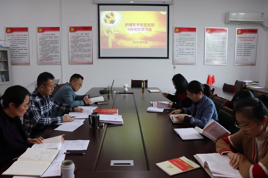 423日下午,护理系学生支部全体党员参加政治学习活动,支部书记李勋华主持会议。