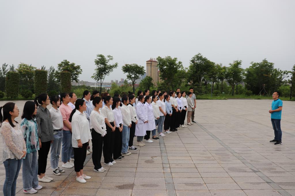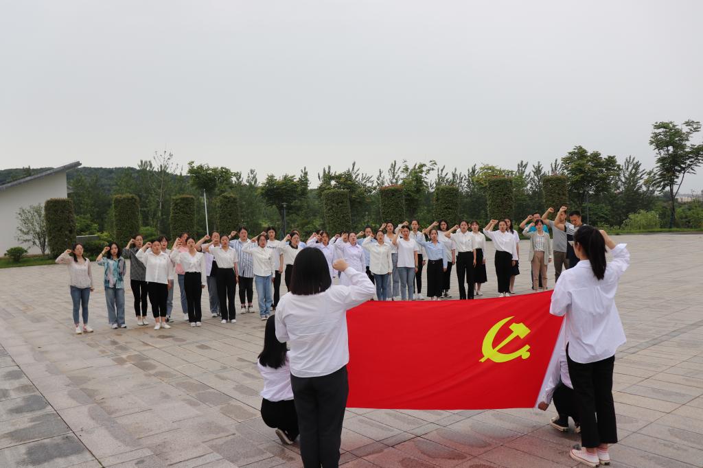 会后,全体与会同志前往滁州市镜园洪源广场举行新党员宣誓仪式。在洪源广场高大的纪念碑下,学生支部党员教师和预备党员全场肃立,向烈士默哀,深切缅怀英烈们的不朽功勋,深情寄托对烈士们的无限哀思。随后所有预备党员在庄严肃穆的气氛中面向党旗庄严宣誓,老党员重温入党誓词。面对着鲜红色的党旗,每个预备党员都用发自内心的声音抒发对党忠诚的决心,以及把革命精神传承下去的决心。系党总支副书记朱启来向新加入的预备党员表示祝贺,并提出要求希望全体预备党员坚定理想信念、时刻保持入党初心;进一步加强学习,锤炼品德修为,做一名合格的共产党员。