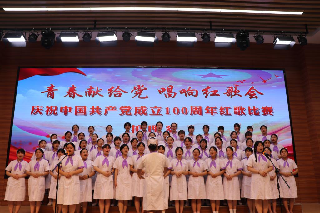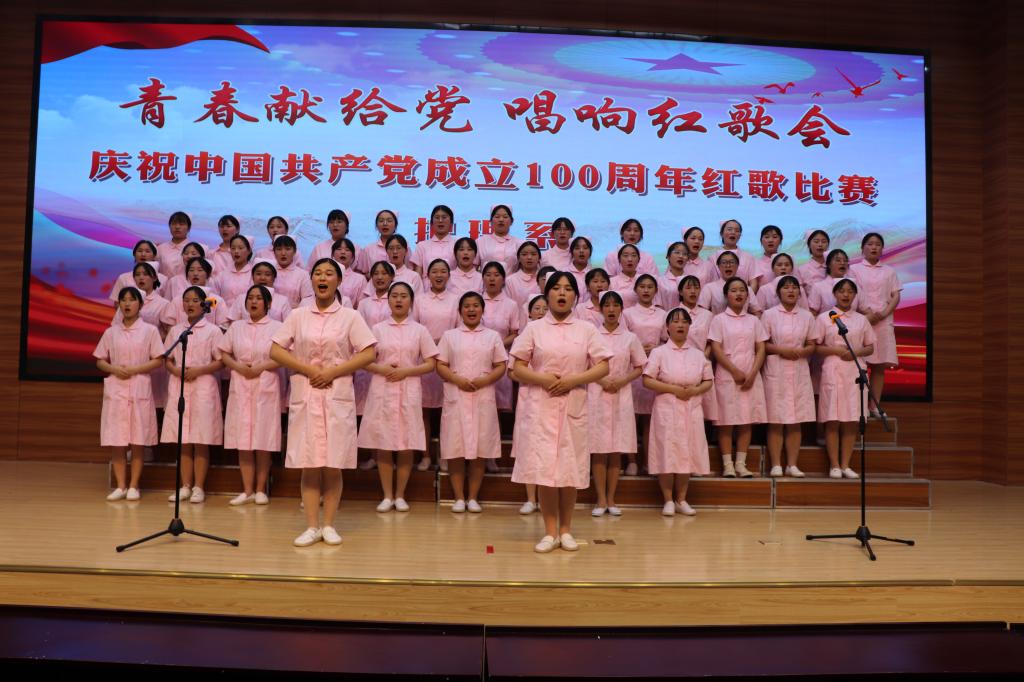 漫漫征途忆峥嵘岁月,声声嘹亮颂百年初心。为传承红色基因,讴歌伟大新时代,激发学生的爱党爱国情怀,展现学生朝气蓬勃健康向上的精神风貌。616日,护理系在学院第二报告厅举办“青春献给党,唱响红歌会”庆祝中国共产党建党100周年红歌合唱比赛。