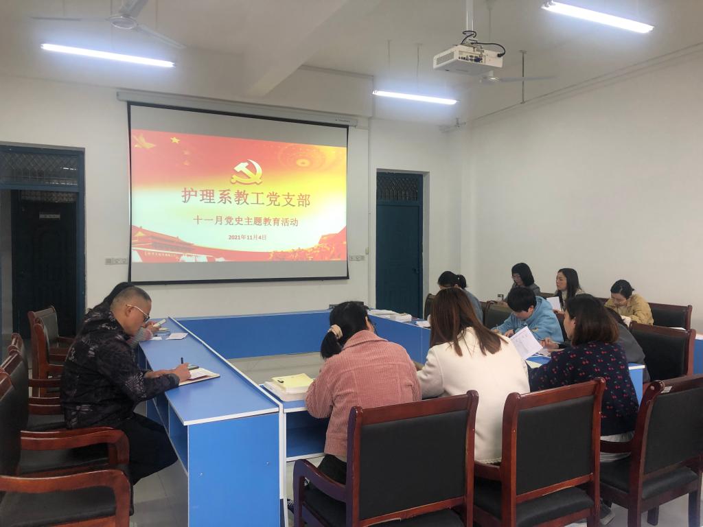 护理系教工党支部于11月4日下午在B3-125开展了十一月爱国主义教育主题党日活动,会议由支部书记左晶晶主持。