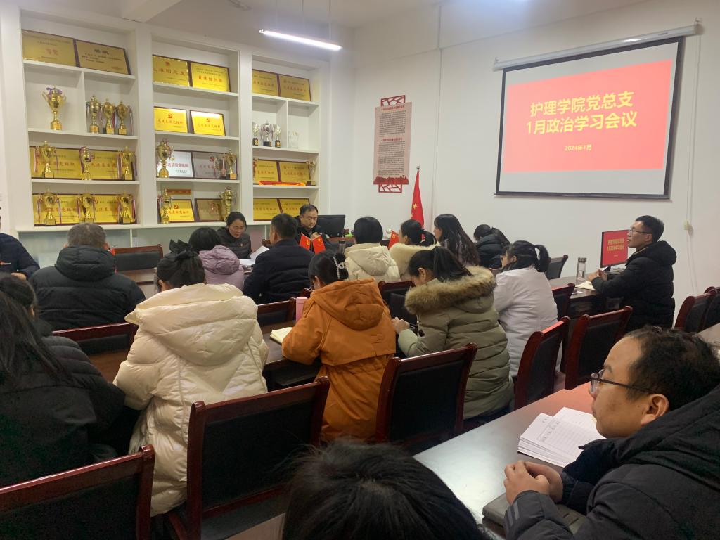 1月4日,护理学院党总支召开1月份全体党员政治学习会。会上,全体党员集中学习《习近平总书记二〇二四年新年贺词》、《滁州城市职业学院二〇二四年新年献辞——坚定信心勇争先 开拓奋进谱新篇》等文件材料,并开展师德师风警示教育。会议由护理学院党总支书记蔡季秋主持。
