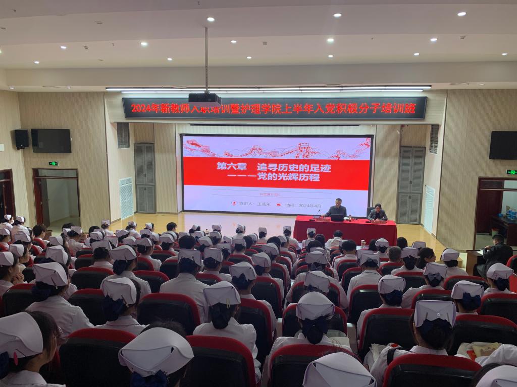 为深入学习贯彻习近平新时代中国特色社会主义思想和党的二十大精神,进一步加强对入党积极分子的培养、教育和考察,提高政治觉悟和理论水平,大力弘扬新时代爱国主义精神。同时,为帮助新入职教师尽快实现角色转变,融入学校教育文化,树立立德树人理念,自觉遵守职业规范,扣好教师职业生涯“第一粒扣子”。4月10日晚在校图文中心四楼报告厅举行2024年新教师入职培训暨护理学院入党积极培训会,校党委书记王燕永为新入职教师和护理学院入党积极分子讲授专题党课——《追寻历史的足迹——党的光辉历程》,由护理学院党总支书记蔡季秋主持。护理学院全体入党积极分子、教师党员及2024年滁州城市职业学院新入职教师参加了培训。