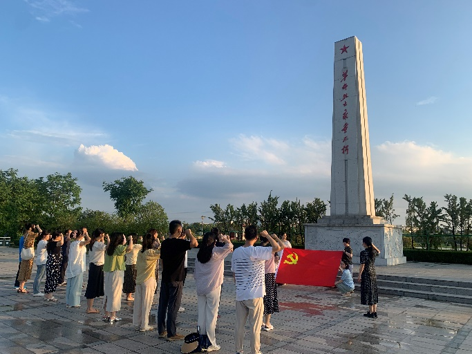 在庄严肃穆的革命烈士纪念碑前,全体党员肃立向牺牲的革命烈士默哀鞠躬,并由党总支书记蔡季秋带领重温入党誓词,以坚定有力的宣誓声,感悟入党的初心和使命,表达不忘初心、砥砺前行的信心和决心。