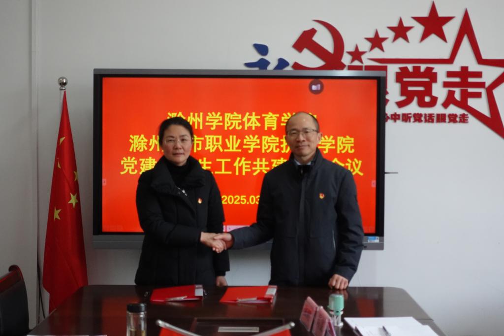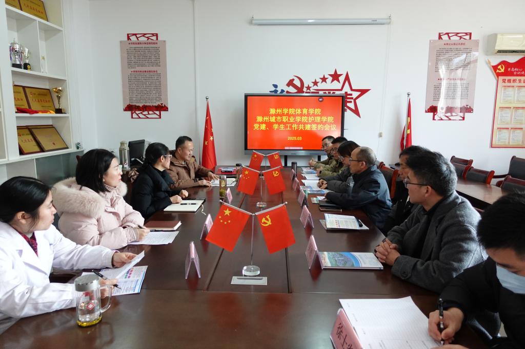 为深入推进滁州本地高校间合作共建,充分发挥党建政治引领作用,促进本地高校之间资源共享、优势互补。3月6日上午,滁州学院体育学院与滁州城市职业学院护理学院,在护理学院党员活动室,举办“党建+”合作共建交流活动。活动由护理学院党总支书记蔡季秋主持,滁州学院体育学院党委书记黄永青、滁州学院体育学院党委副书记余少兵等出席本次活动。