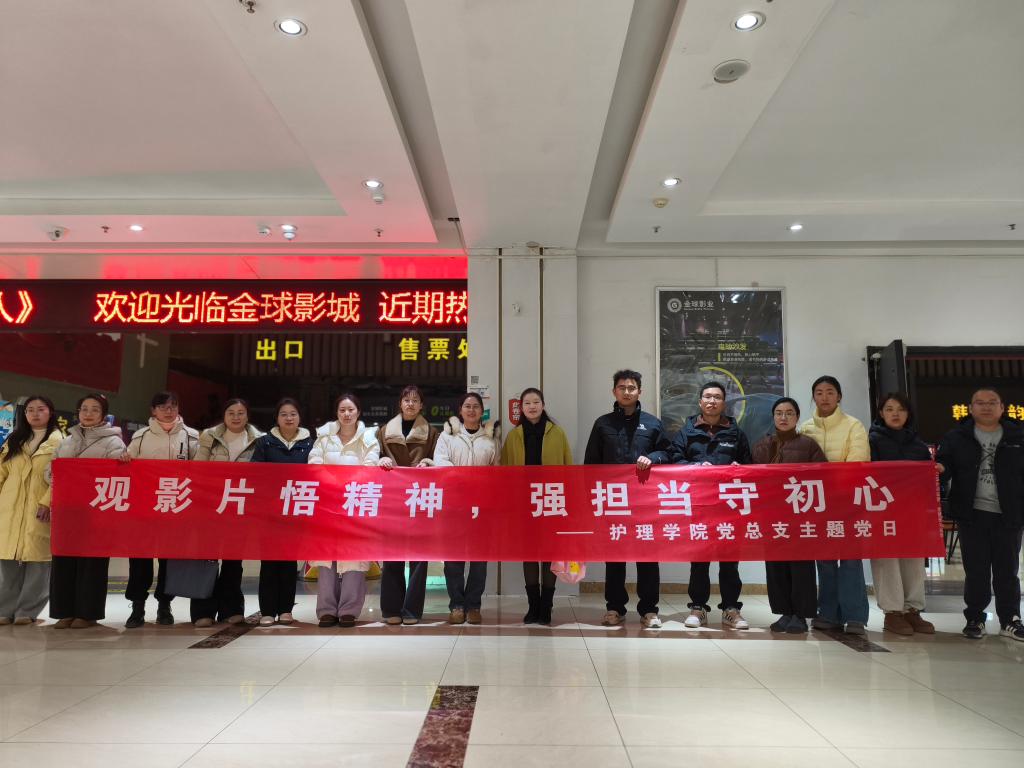为深化爱国主义教育,传承奋斗精神,2026年1月14日,护理学院党总支组织全体教职工党员开展“观影片悟精神,强担当守初心”主题党日活动,集体观看抗战题材影片《得闲谨制》。活动旨在通过影像重温历史,激励党员从英雄故事中汲取精神力量,筑牢信仰根基。
