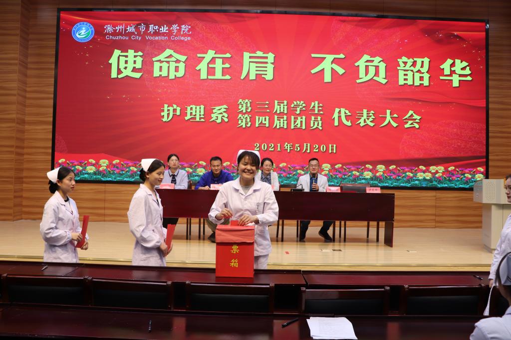 5月20日下午,护理系在学院第二报告厅召开第四届团员代表大会暨第三届学生代表大会。系党总支书记蔡季秋、学管秘书卢齐伟、学生党支部书记李勋华、系团总支书记王艳等领导老师出席了会议,会议代表共84名,出席大会的代表是来自全系近40个班级的优秀学生,代表着全系近1600名学生,具有广泛的代表性,并拥有选举权。系党总支副书记朱启来主持会议。