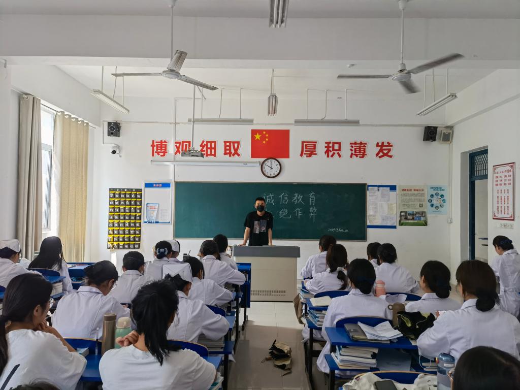 为加强学风建设,抵制作弊等不良风气,营造好学、乐学、笃学的学习氛围,维护考试的公正和严肃性,22日晚,护理学院各班积极开展诚信考试主题班会。