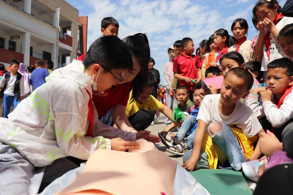 进一步提高应急救护知识的社会普及率,提高小学生健康保护意识和安全急救知识,增强应急处理能力,提升安全防范意识。6月14日,滁州城市职业学院南丁格尔青年志愿者服务队来到全椒县大墅小学,为全体师生开展急救知识及健康科普活动。