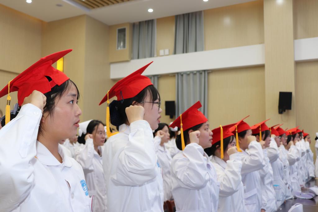 护理学院党总支副书记卢齐伟向18岁的同学们表示热烈祝贺,并勉励成人学生要牢记今天的誓言,拿出勇气,拿出干劲,踔厉奋发,笃行不怠!希望同学们心怀感恩,担当责任;超越自我,勇往直前;志存高远,自强不息,书写青春华章!十八岁的风已经到站,从今天开始,愿青年们小小的肩膀能承担起大大的责任,重重的壳仍裹挟着对梦想轻轻地仰望,不负韶华,砥砺前行。(图:卢齐伟 文:王艳 初审:蔡淼 复审:卢齐伟 终审:蔡季秋)