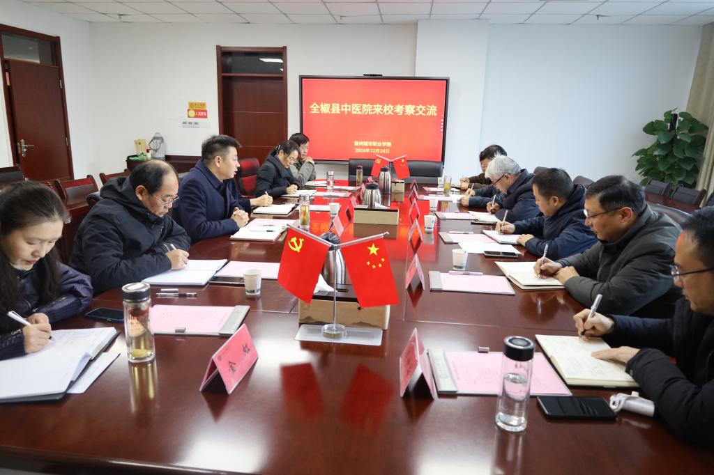 12月24日上午,全椒县副县长马殿勇带领全椒县中医院党委书记刘德云、院长何圣勇等党政班子6人走访了我校。我校党委副书记、校长汪上,党委委员、副校长曹士东,教务处处长戴锦明、科技处副处长田兆山以及护理学院党总支书记蔡季秋、院长金虹等热情接待了对方。