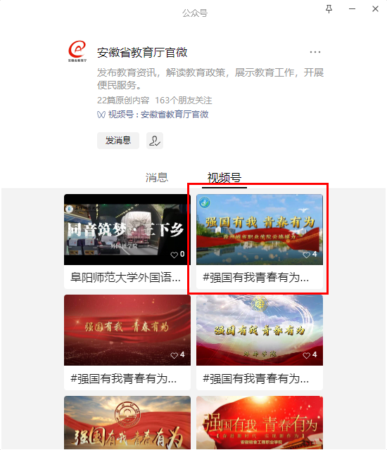 安徽省教育厅官微推介我校“强国有我 青春有为”云端接力微视频
