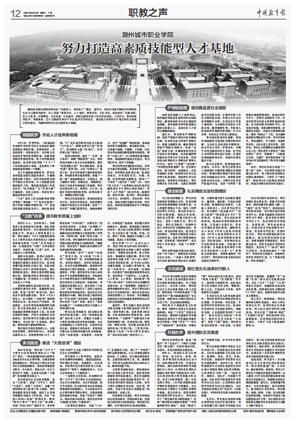 《中国教育报》整版报道我校努力打造高素质技能型人才基地