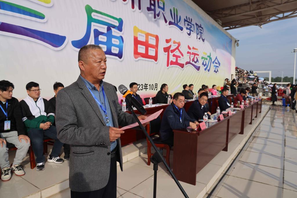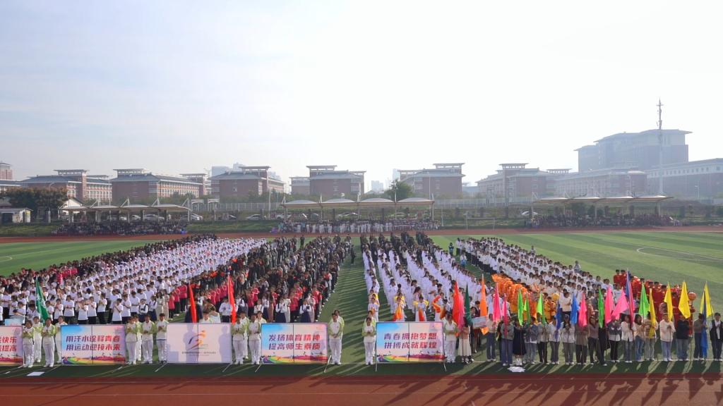 入场式后,开幕式在雄壮的国歌声中拉开帷幕。施向阳在开幕辞中代表学校全体师生,对为本次运动会筹备工作付出辛勤劳动的师生表示衷心的感谢,向大会全体工作人员、裁判员、运动员们致以诚挚的敬意。他指出,体育承载着国家强盛、民族振兴的梦想。学校一直重视体育工作,充分发挥其在深化改革、全面推进学生素质中的作用。近两年,我校荣获省级以上奖项近50项,其中,国家级奖项近20项。希望广大师生高度重视体育锻炼,以运动会为平台展示个人才华,磨练自我意志,培养团队合作精神与集体荣誉感。