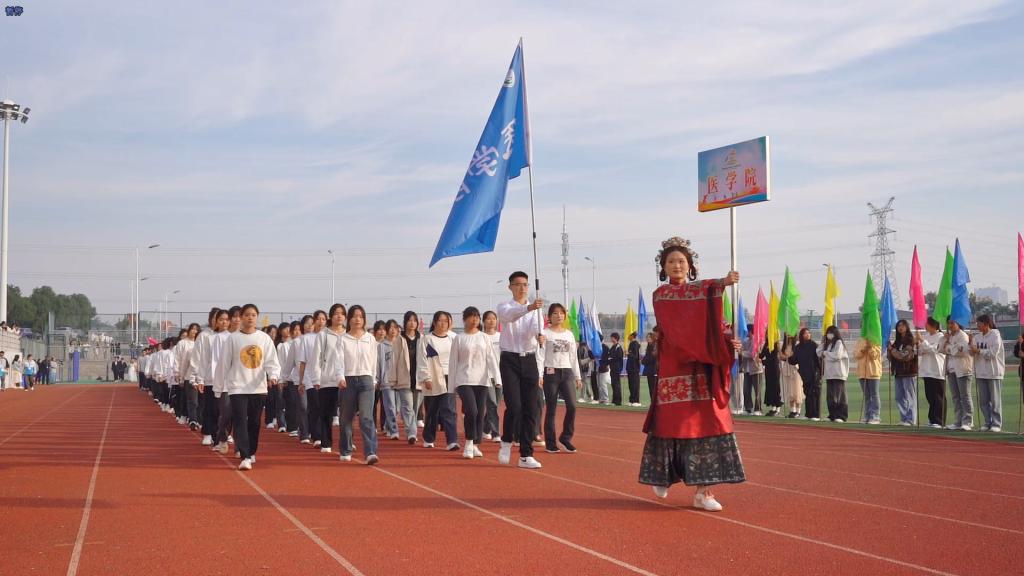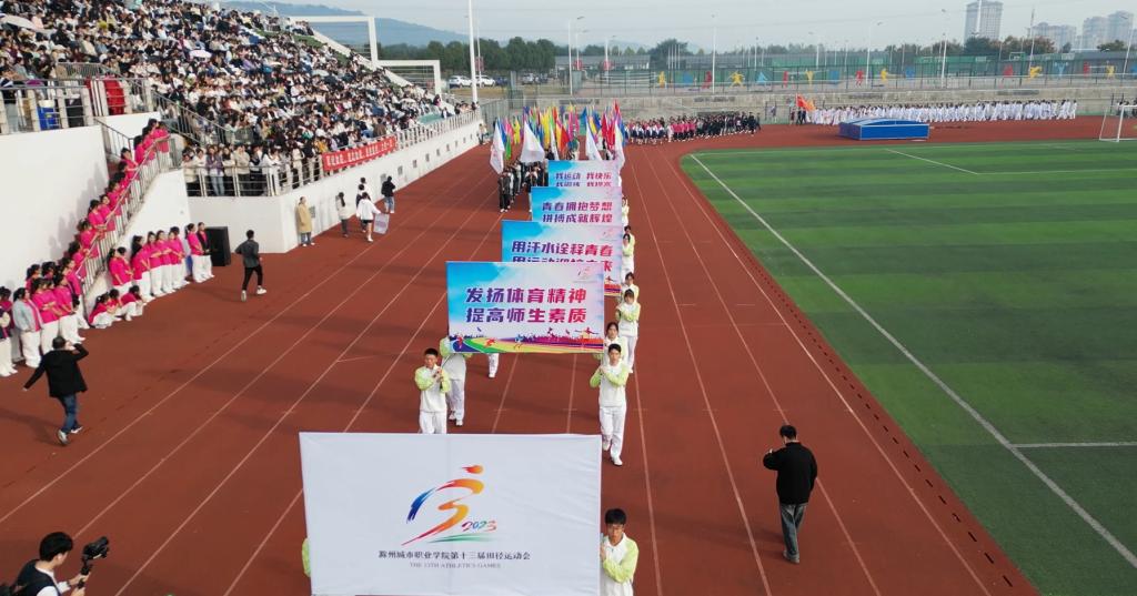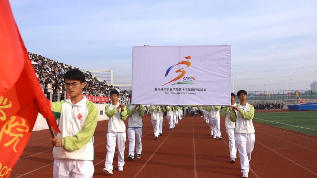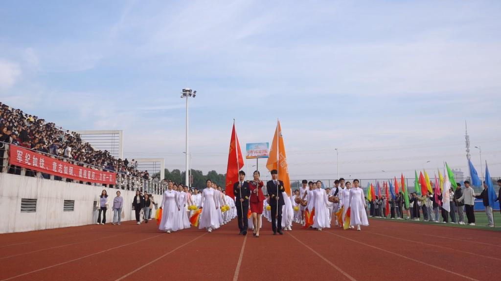 伴随着激昂的《运动员进行曲》,校旗会徽护卫队、运动会展板方阵、彩旗方阵依次通过主席台接受检阅。他们步伐矫健整齐,动作铿锵有力,向师生们展示了城院学子英姿飒爽的风采。随后,由各学院代表队组成的表演方阵依次入场,他们的入场构思巧妙,结合专业特色融入中国传统文化元素,铿锵的步伐与精彩的表演赢得了全场热烈掌声!