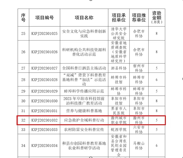 我校急救项目获批2023年度安徽省科学技术普及项目