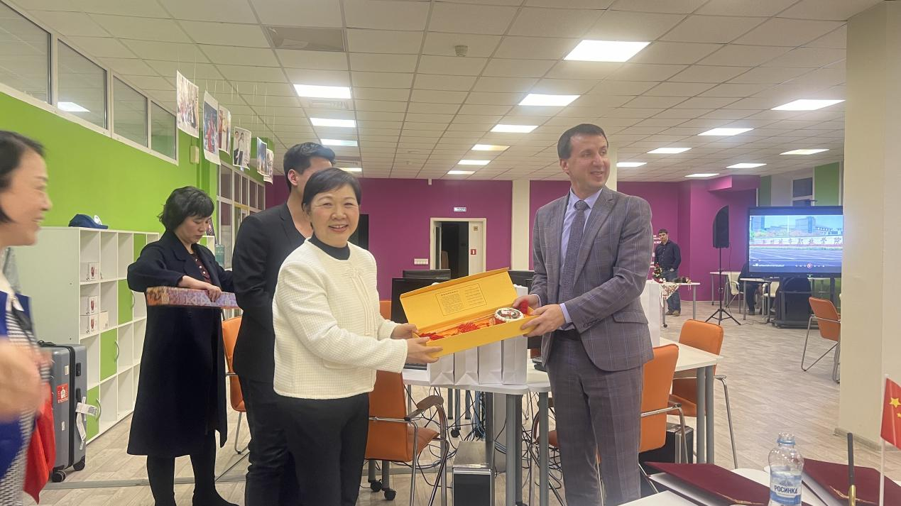 张志华向俄方大学赠送安徽省非物质文化遗产——凤画、凤阳花鼓