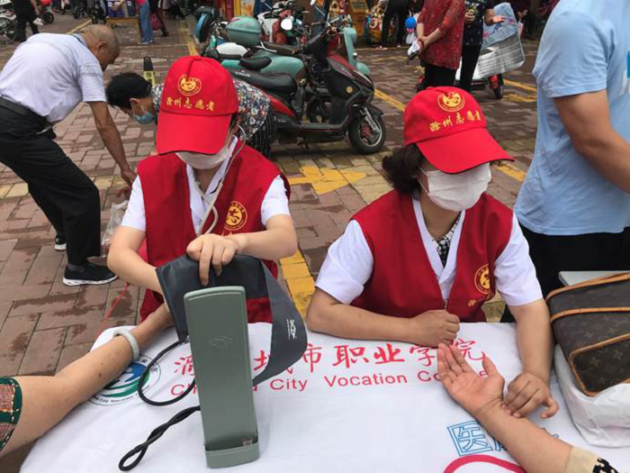 立足社区,义诊包粽送温情。6月23日,学院志愿者前往丰乐社区开展端午节“粽叶飘香,齐过端午”爱心包粽送暖活动,志愿者同社区义工一道动手包粽并探访社区独居老人,为社区的孤寡独居老人送去节日的温暖。6月22日,学院志愿者赴滁州第一幼儿园组织端午节活动,幼儿们体会了传统节日带来的乐趣,在活动中学会互相合作、体会亲情,进一步感受并传承中国文化,也增强了幼儿爱家乡,爱祖国的情感。6月21日,学院赴丰乐社区开展义诊活动,医护人员们耐心细致地为老人们测血压、量血糖、询诊等,并详细解答居民提出的问题,根据每个人的身体状况,提出针对性的建议和治疗方法。此次义诊活动,受到了居民的欢迎,大家纷纷表示,医生上门服务,方便了大家,也让中老年人能够更好地了解自己的身体情况,合理膳食,科学预防,安享晚年。